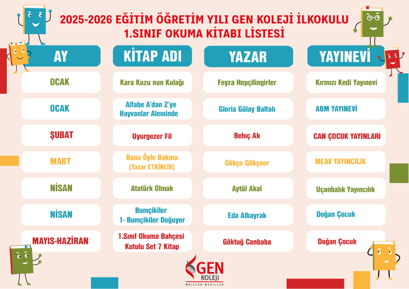 1.Sınıf 2025-2026 Çalışma Takvimi ve Kitap Okuma Planlaması